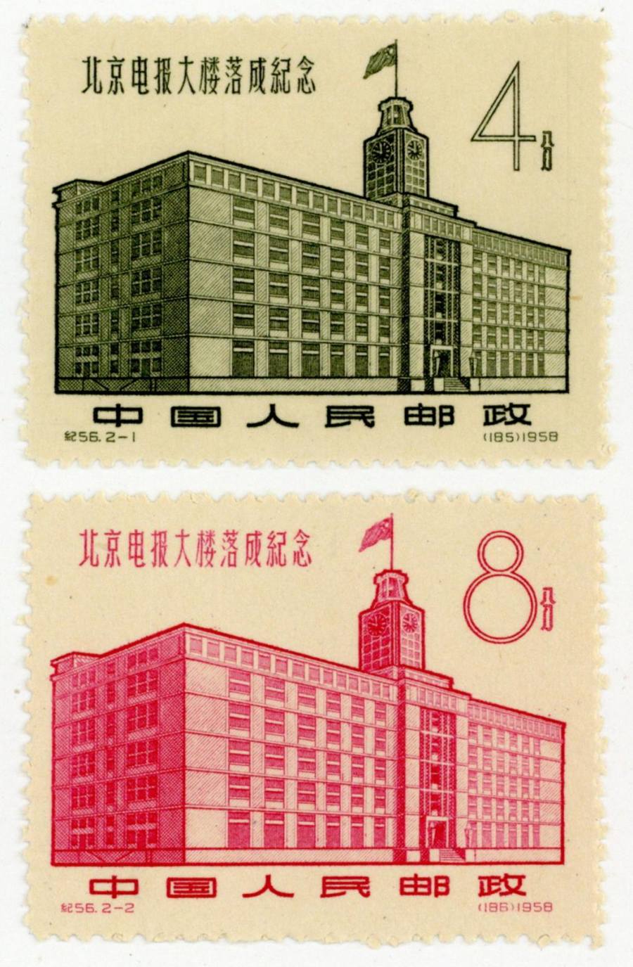 北京電報ビル落成 バラ2種完 1958年 紀56