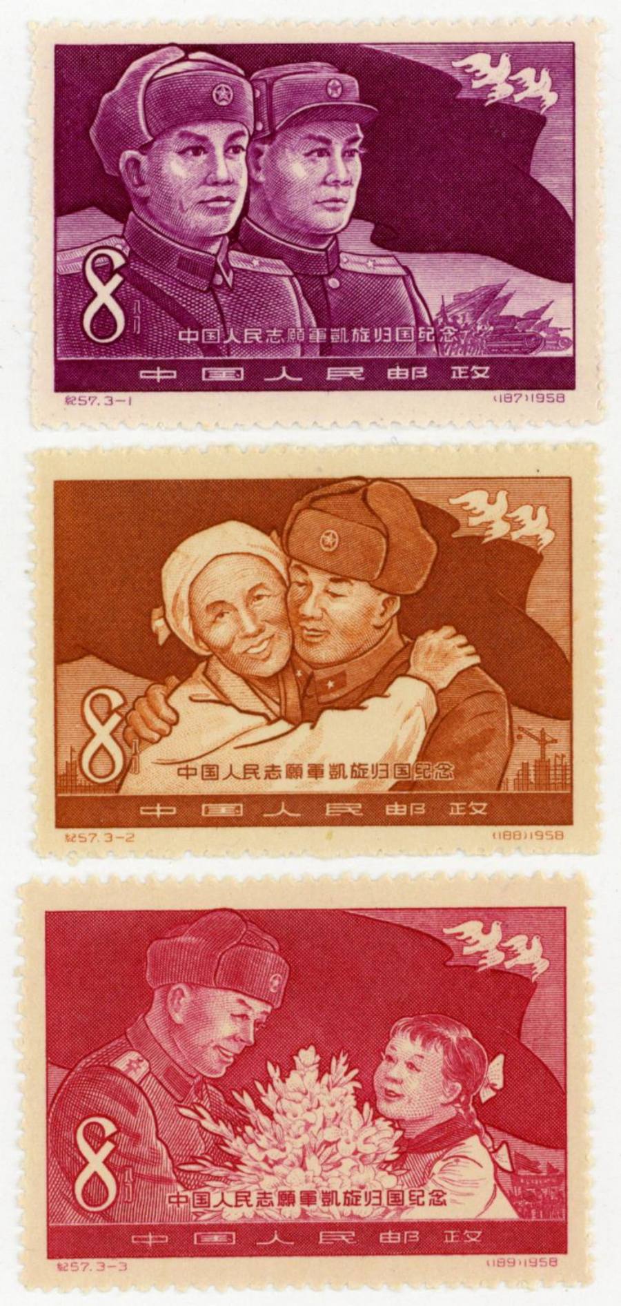 中国人民志願軍凱旋帰国 バラ3種完 1958年 紀57