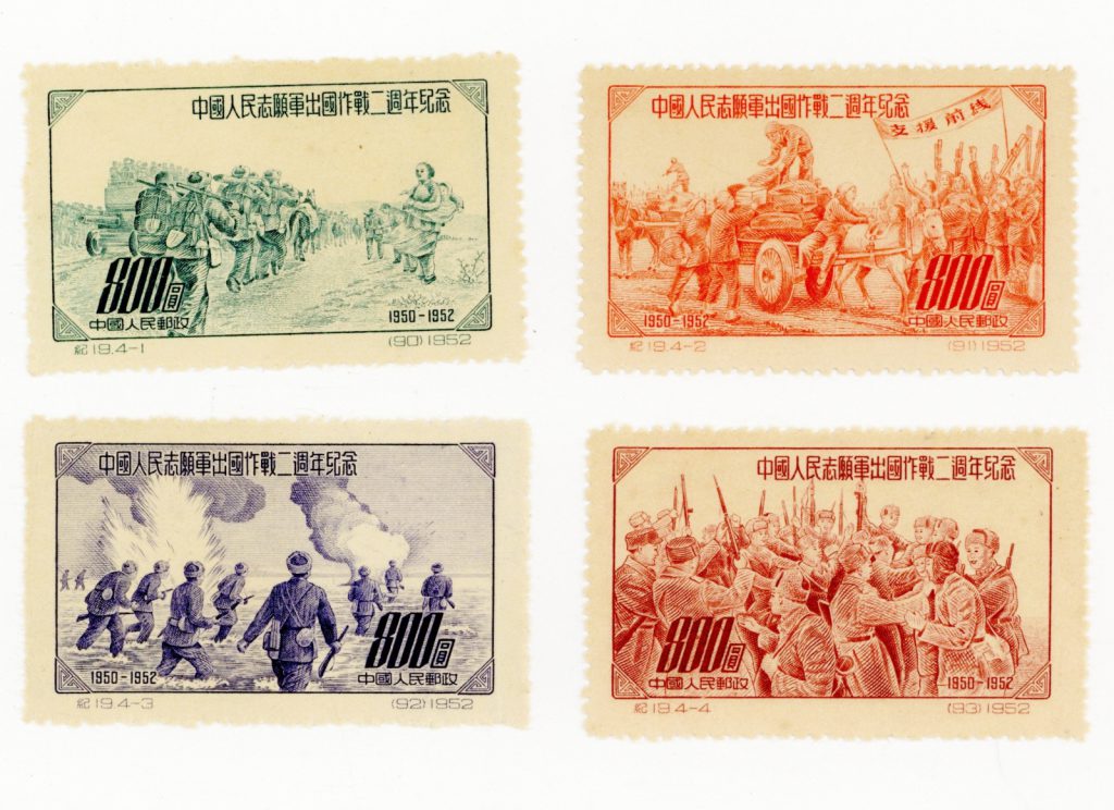 志願軍朝鮮派兵2周年 バラ4種完 1952年 紀19