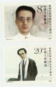 瞿秋白同志誕生90周年 バラ2種完 1989年 J157