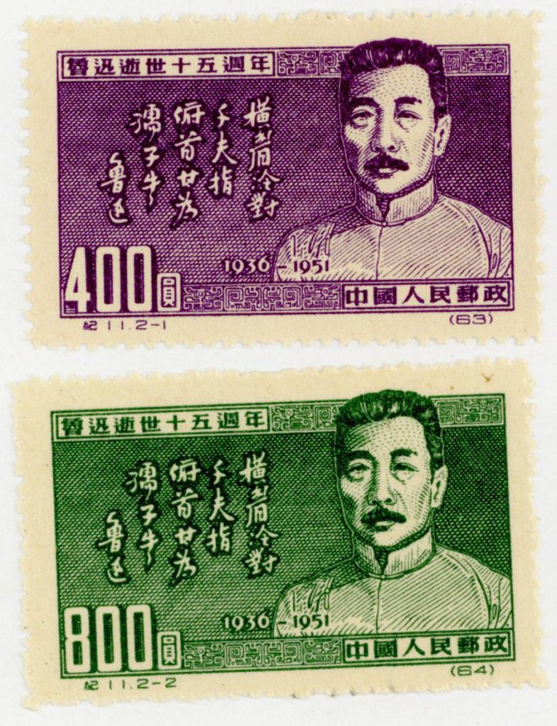 魯迅死去15周年 バラ2種完 1951年 紀11