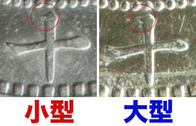 以上3点が新1円銀貨の大型・小型を見分けるポイントです。